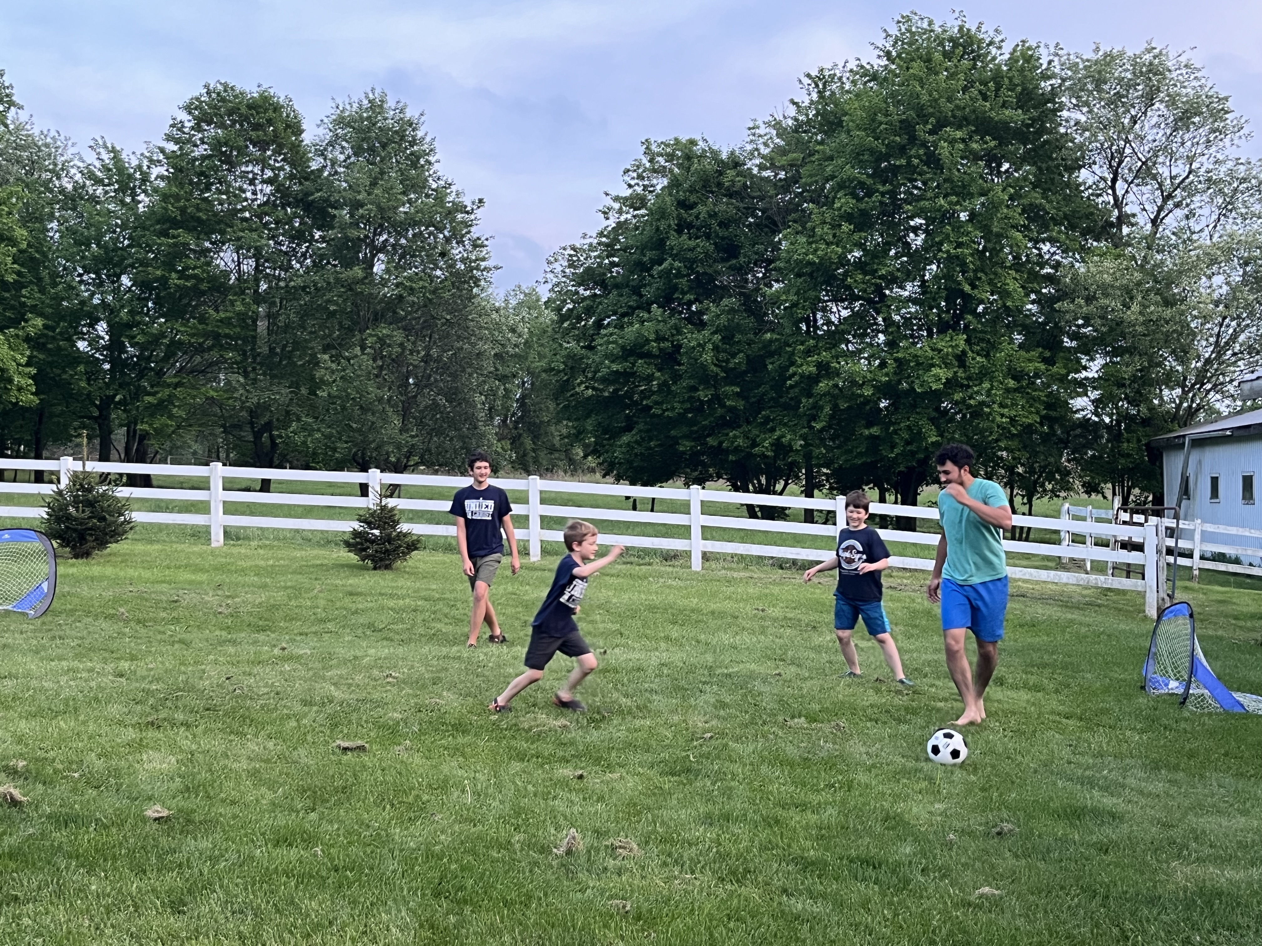 Top photo: Misael Barron Kipfer, from Bolivia, plays soccer with his host brothers in the backyard of their home in Apple Creek, Ohio. Playing soccer together was a regular occurrence during his stay with the Zuercher family. (Photo/Angela Zuercher)